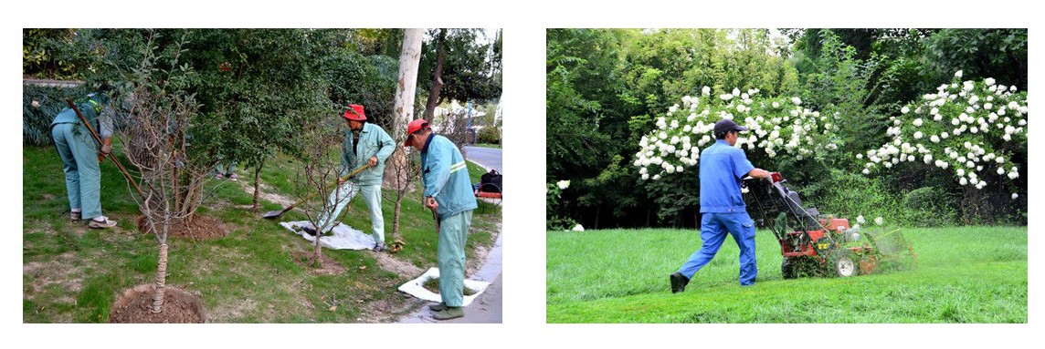 4. 草坪管理:進(jìn)行草坪鋪設(shè)、修剪、打孔、補(bǔ)播、病蟲(chóng)害防治等工作,保持草坪平整、翠綠、